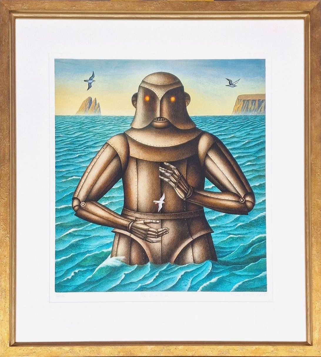 Pozdní obraz podle autorovi dřívější knižní ilustrace, která byla na titulní straně slavné knihy Teda Hughese. Německé vydání pod názvem Der Eisenmann (1987 a 1997) ilustroval Jindra Čapek.